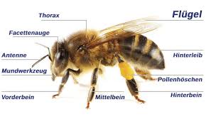 Honigbienen sind nicht nur klein und plüschig und haben nicht nur einen Stachel und Flügel. Zum Körperbau einer Biene gehört noch viel mehr. Im Folgenden wird der Körperaufbau der Biene einmal detailliert beschrieben und mit einer Grafik bildlich dargestellt. Bei der Klasse der Insekten, zu denen die Bienen gehören, ist es üblich, dass der Körper in drei Abschnitte geteilt ist.